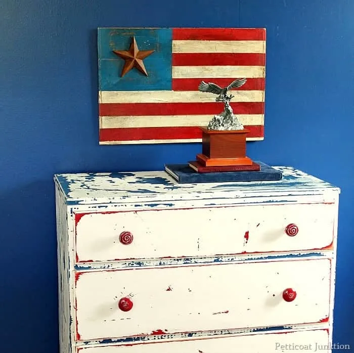 Kathy from Petticoat Junktion created a gorgeous red, white, and blue American flag design using an iron star for a festive Fourth of July decoration. You have to see what she used as the base!
