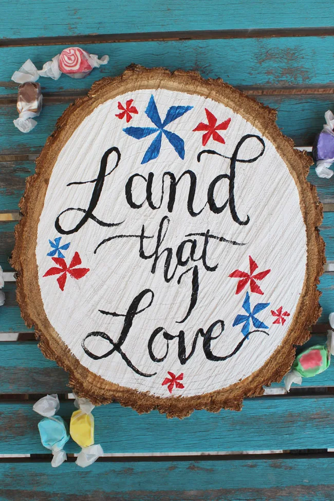 Natalie from Doodlecraft shares a tutorial for painting on a wood slice to create a beautiful and patriotic piece that can be hung or stood on a shelf.