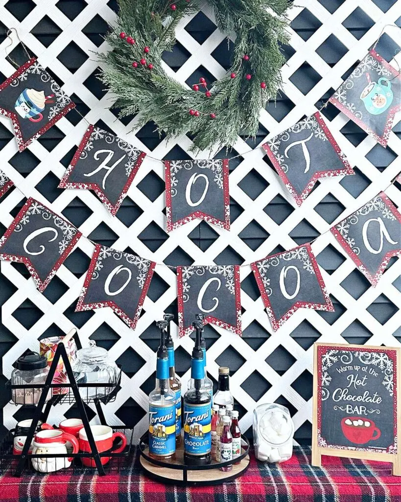 The first thing I did was search Pinterest for a festive hot cocoa banner. You can get this adorable free printable banner here.