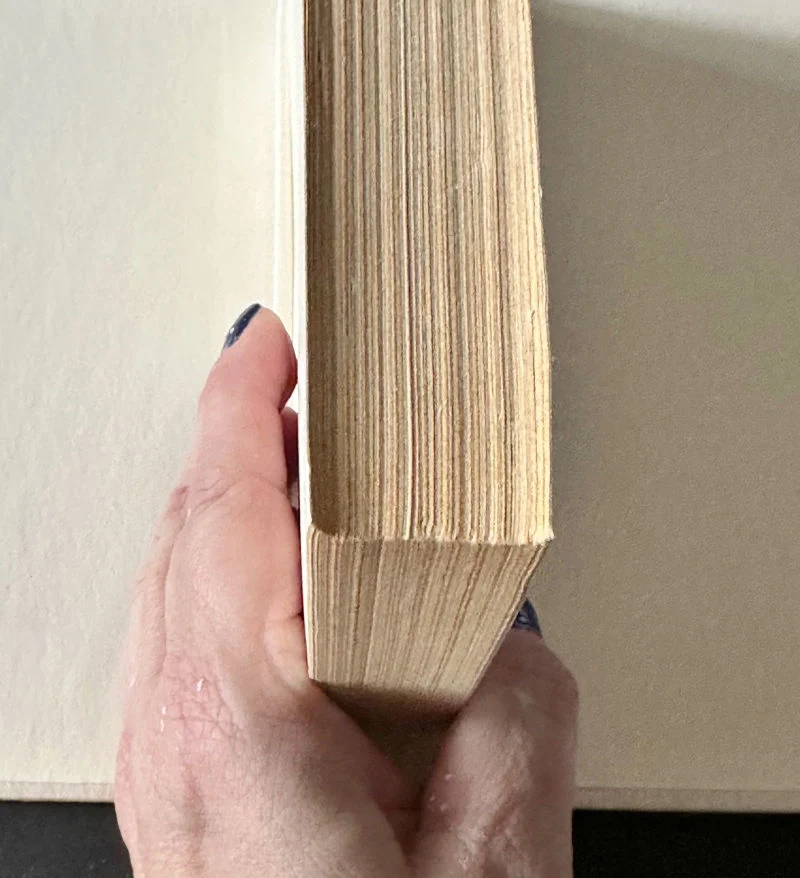- Go to the middle of the book and open it extra-wide to break the spine.