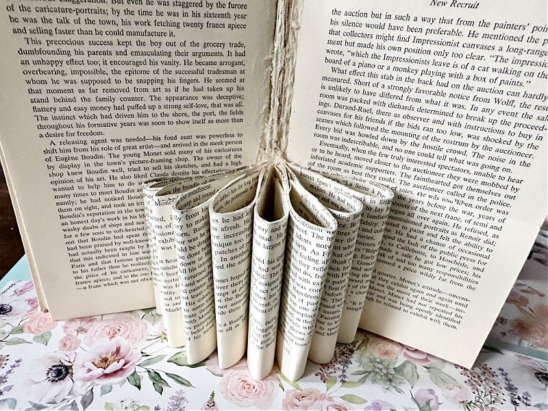 Create a unique book vase with this easy book page folding tutorial. Learn how to upcycle an old book into DIY home decor with vintage charm.
