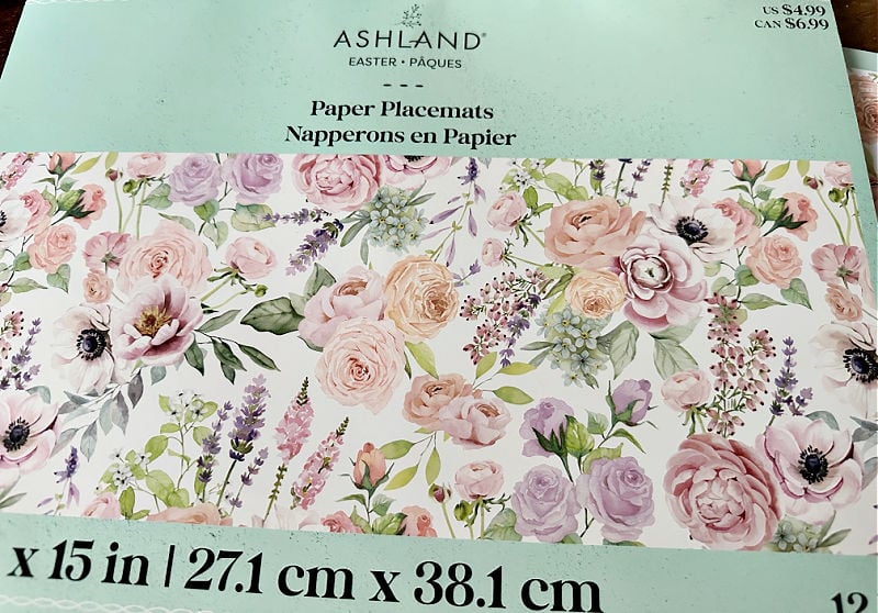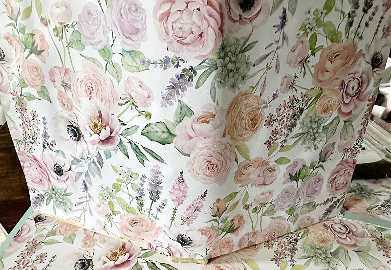 I used lovely floral paper placemats that I picked up on clearance at Michael’s. But, you can use napkins, wrapping paper, tissue paper or decorative cardstock.