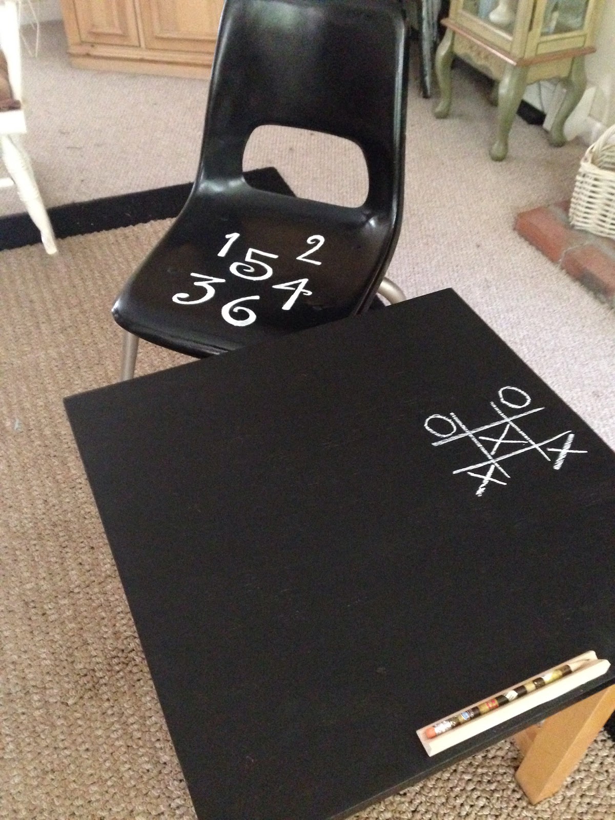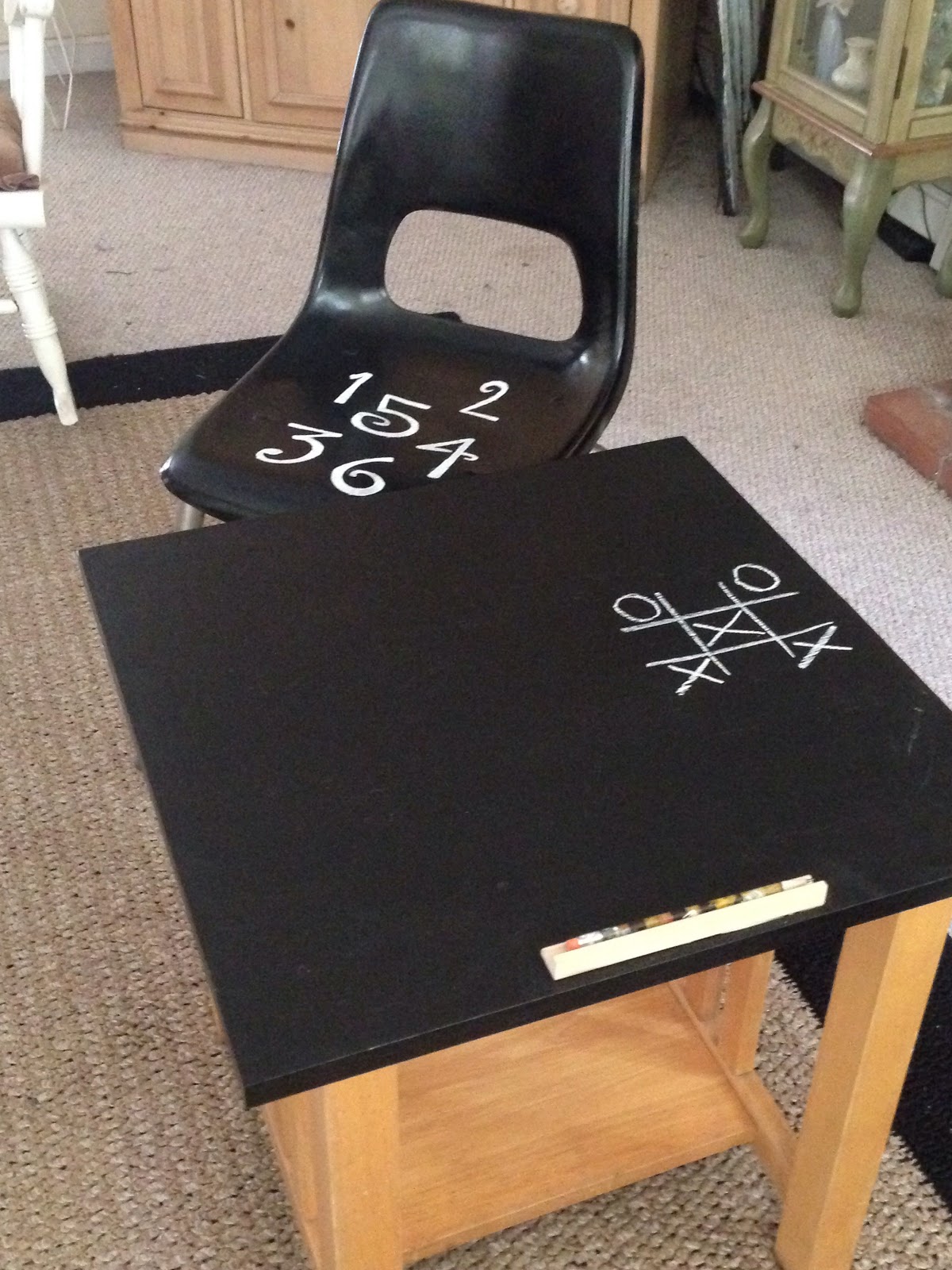 Next I moved on to the desk. I thought a chalkboard top would be fun for kids to play tic tac toe on, etc.