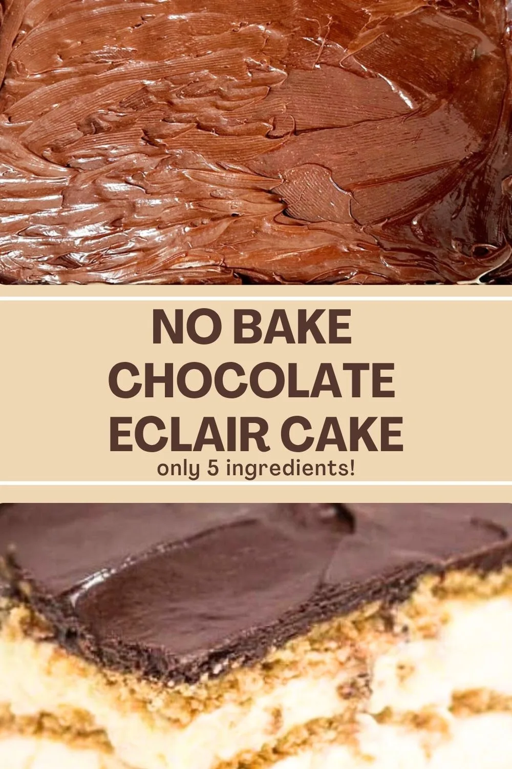 Make a no bake chocolate eclair cake with just 5 ingredients! This easy, creamy dessert is a crowd favorite and perfect for any occasion.