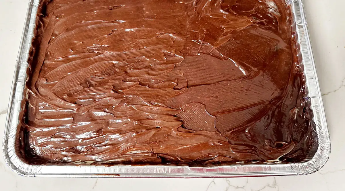 Stir well to soften, making it easier to spread. Smooth the frosting evenly over the top layer of graham crackers, then refrigerate the cake for 4 to 6 hours before serving.
