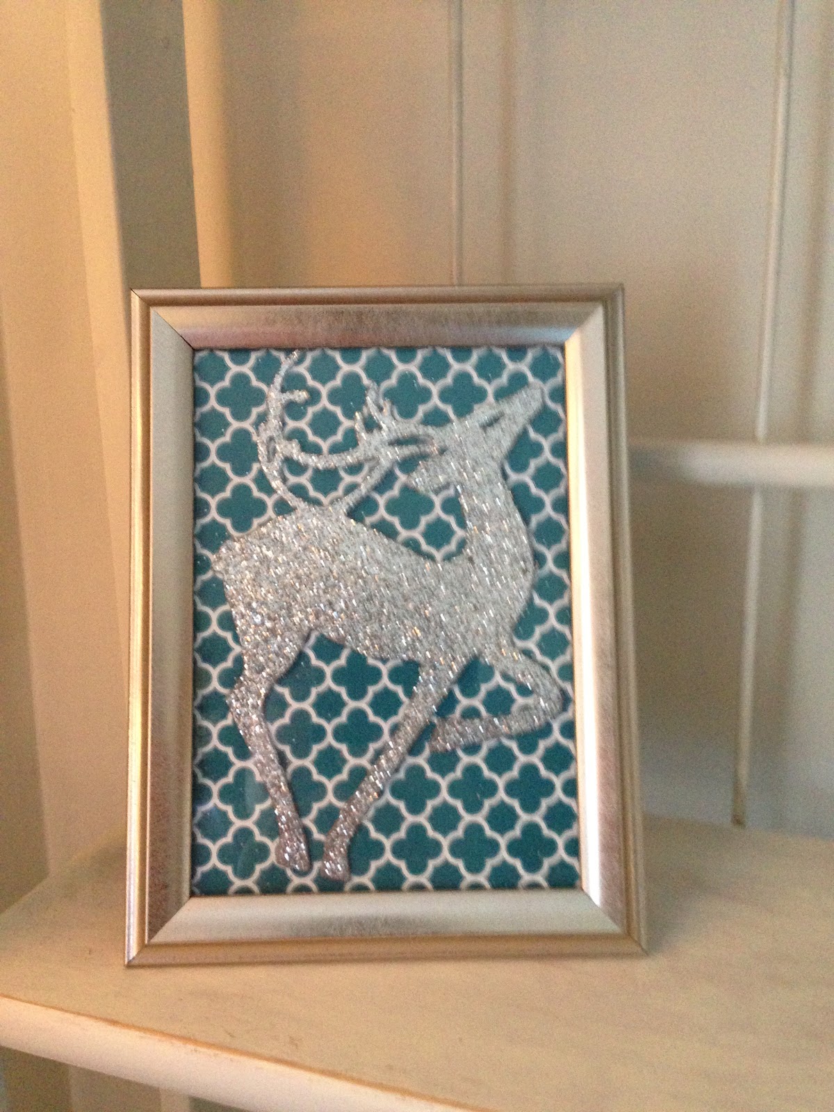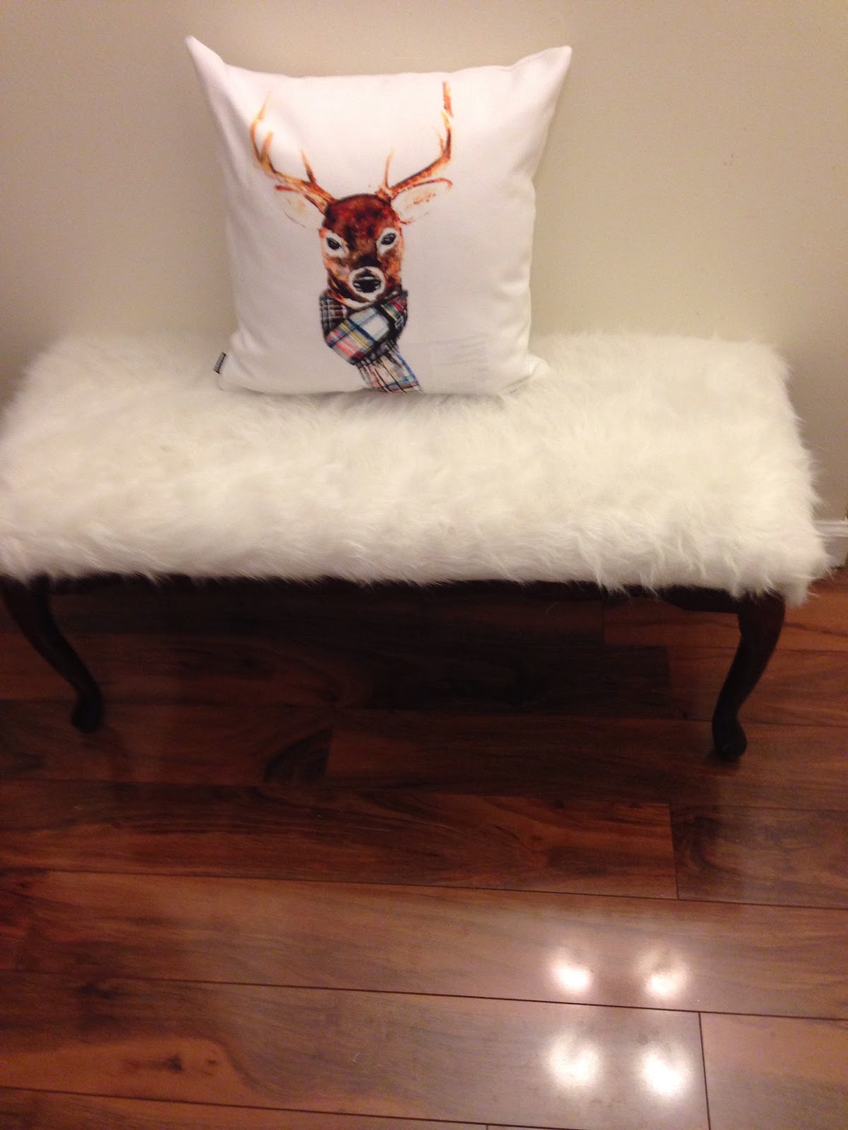 This goes into the open living/dining room. I continued with the silver, white & gold theme. I just showed this white faux fur bench that I finished last week & am so in love with the beautiful deer pillow I purchased from Lucy at https://www.craftberrybush.com/
