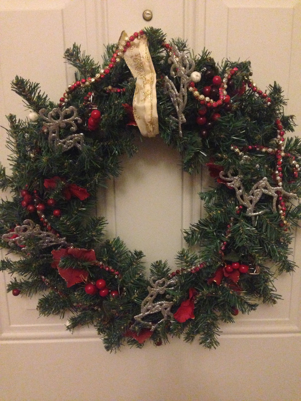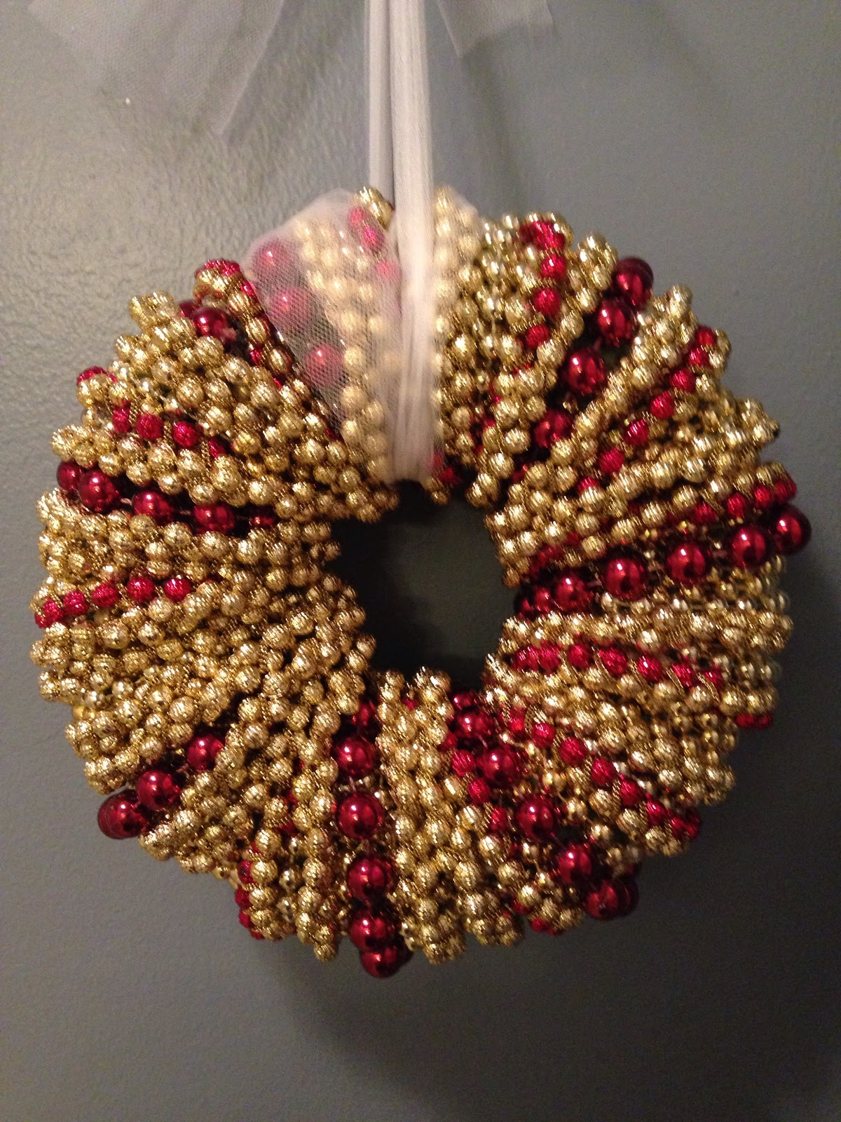 This is another simple, DIY project from The Dollar Tree using a foam wreath & beads that I simply wrapped around. I did use about 7 or 8 though.