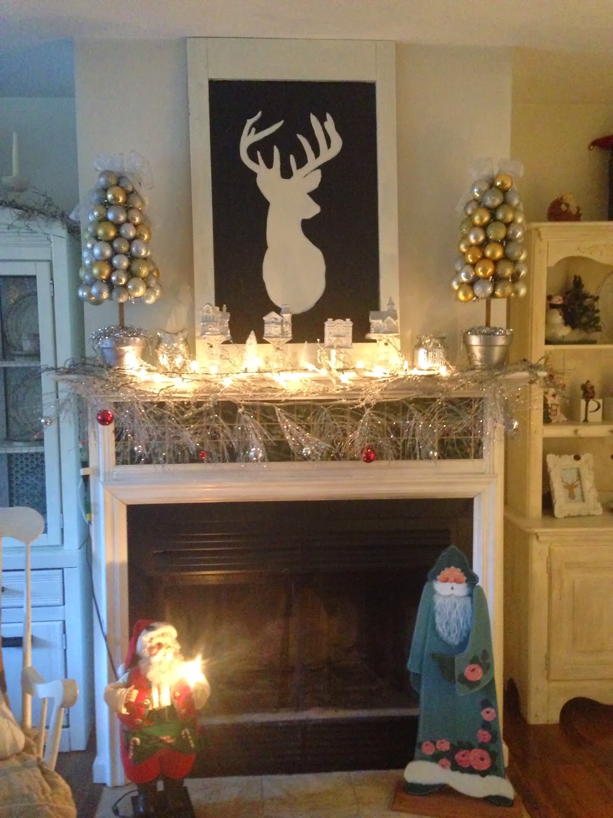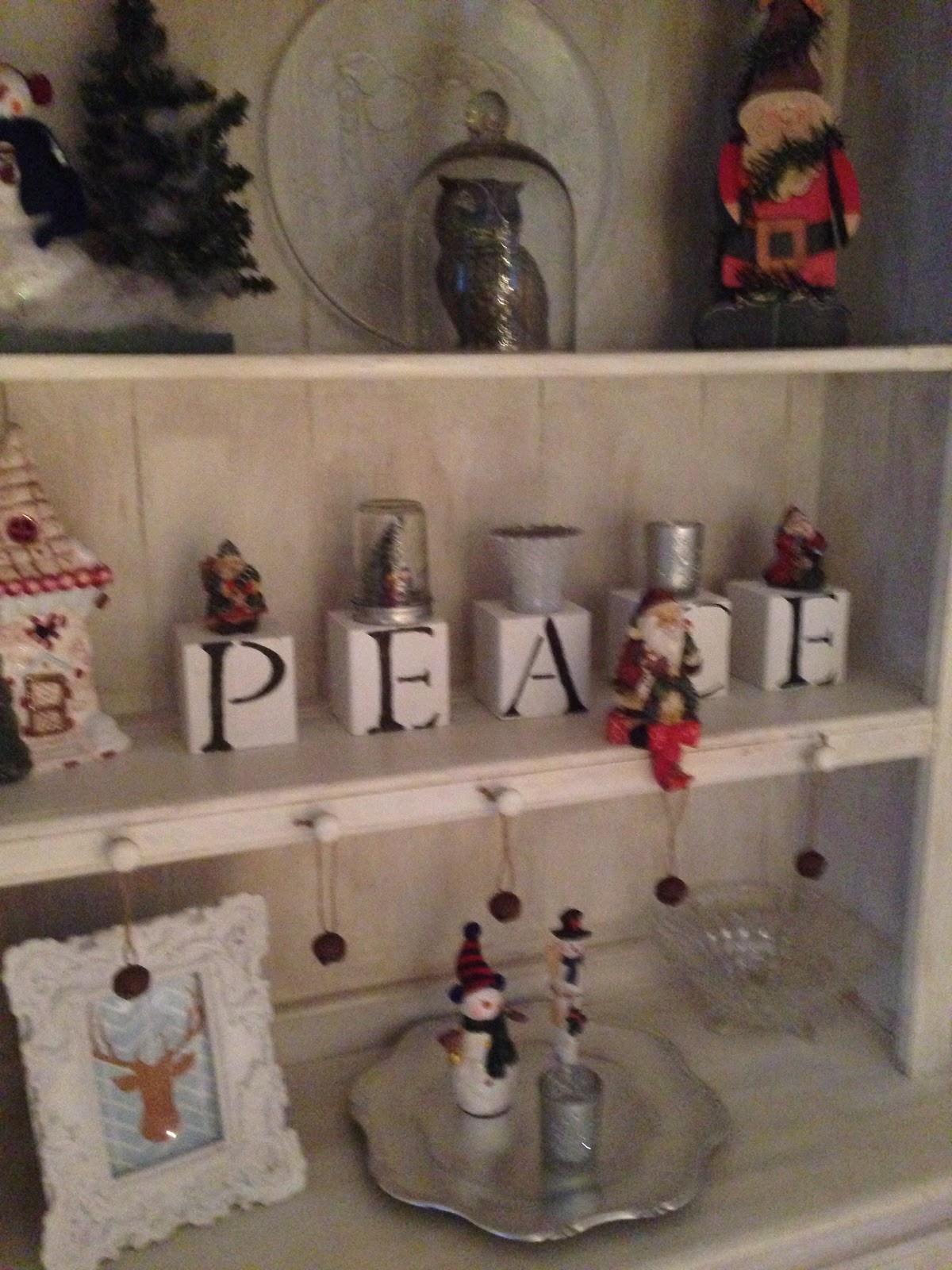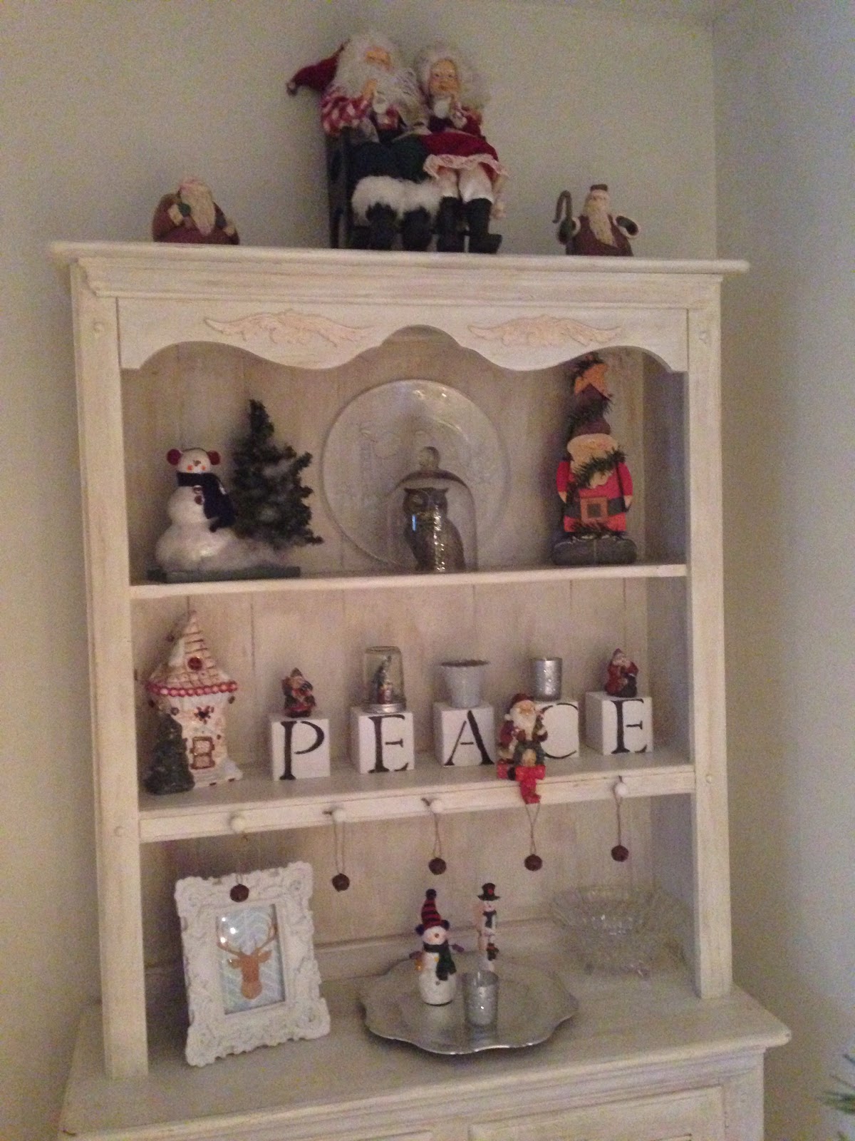 One of my buffets holds more of my Santa collection, as well as the DIY Peace blocks I showed previously. I love Mr. & Mrs. Clause sharing hot chocolate!