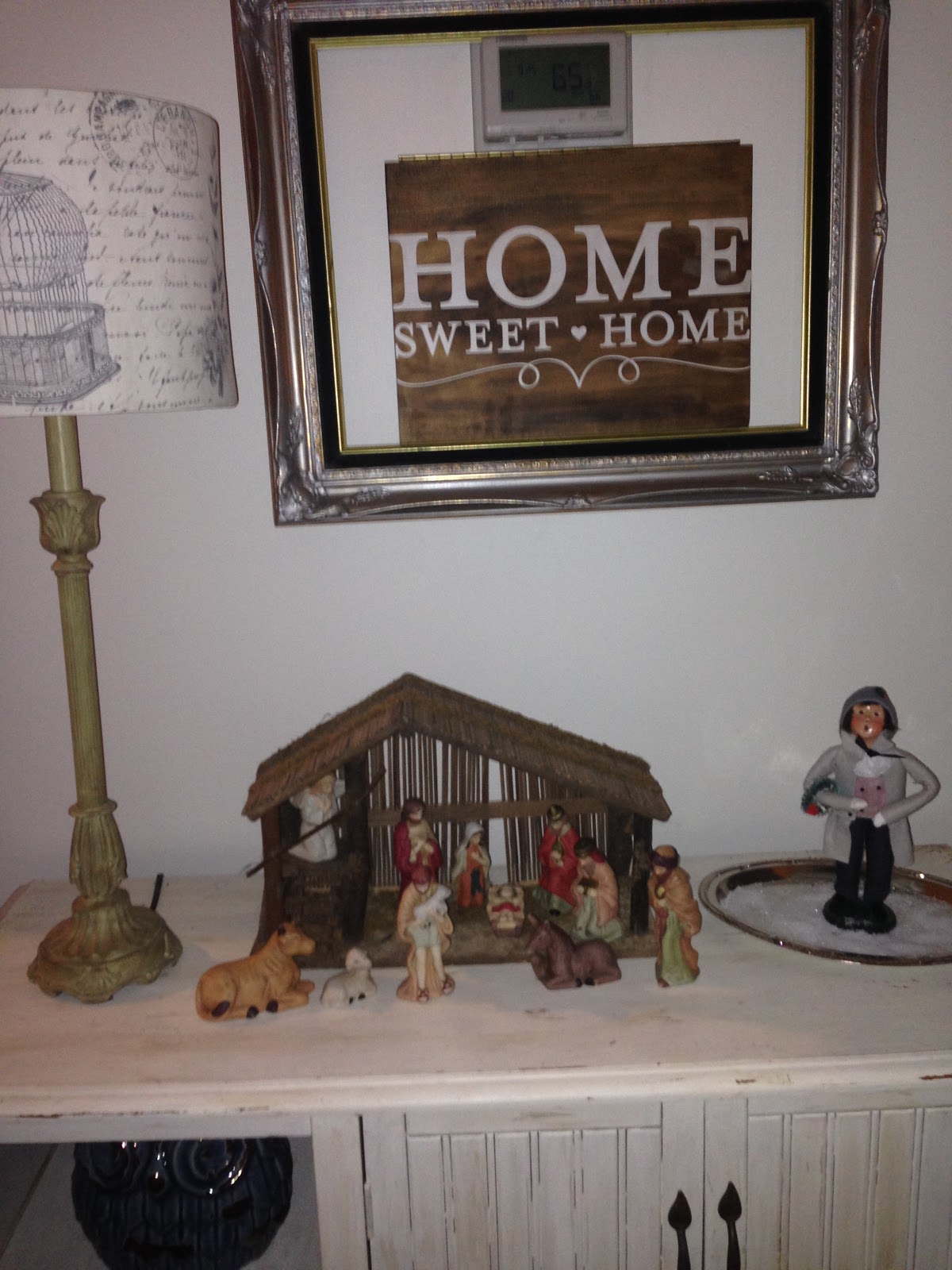 This buffet sits in the living room as well & holds an antique nativity and a Dept 56 Caroler that my dear friend Elaine gave me.