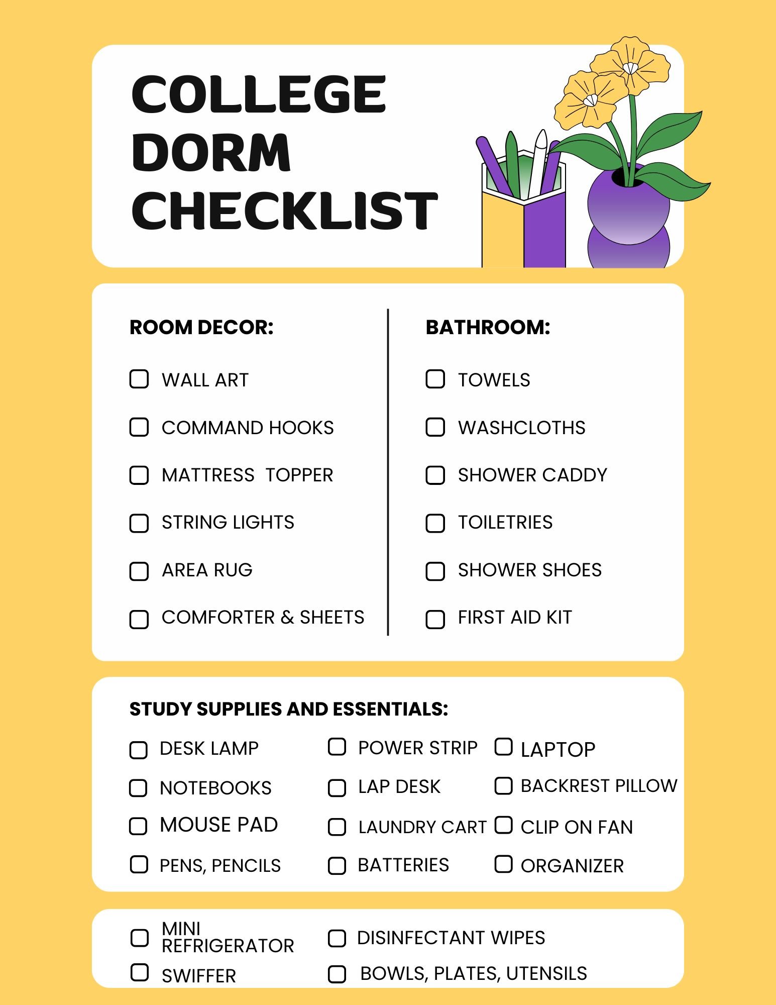 College Dorm Checklist