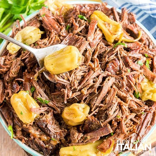Mississippi mud roast simmers low and slow for a melt-in-your-mouth, juicy Sunday dinner! This easy crockpot pepperoncini pot roast requires just 5 simple ingredients.