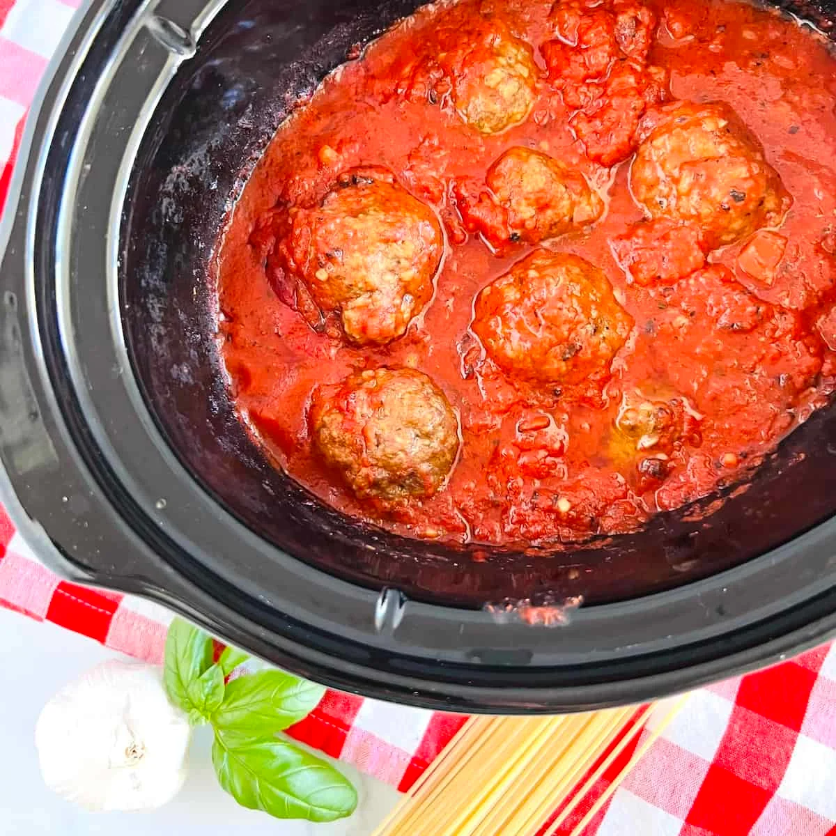 Slow cooker Italian meatballs and sauce is a simple, hands-off crockpot recipe. Juicy, seasoned meatballs slowly simmer in a rich, homemade tomato sauce for a comforting meal.