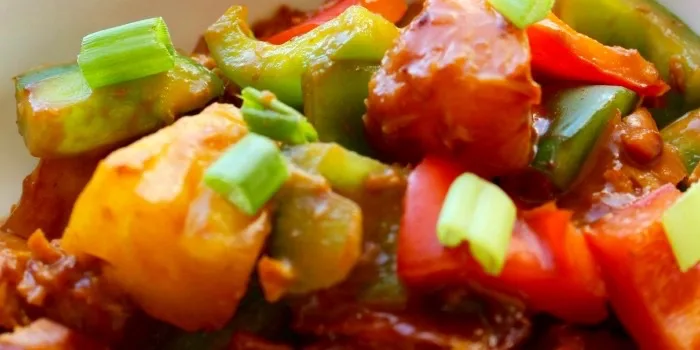 Crockpot sweet and sour chicken features tender chicken pieces, juicy pineapple, crisp bell peppers, all coated in a flavorful sweet and tangy sauce.