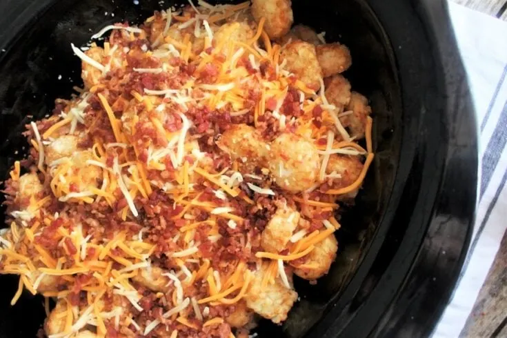 On busy days, this slow cooker chicken tater tot casserole is a lifesaver; just toss everything in and let it cook into a cheesy, bacon-topped comfort meal!