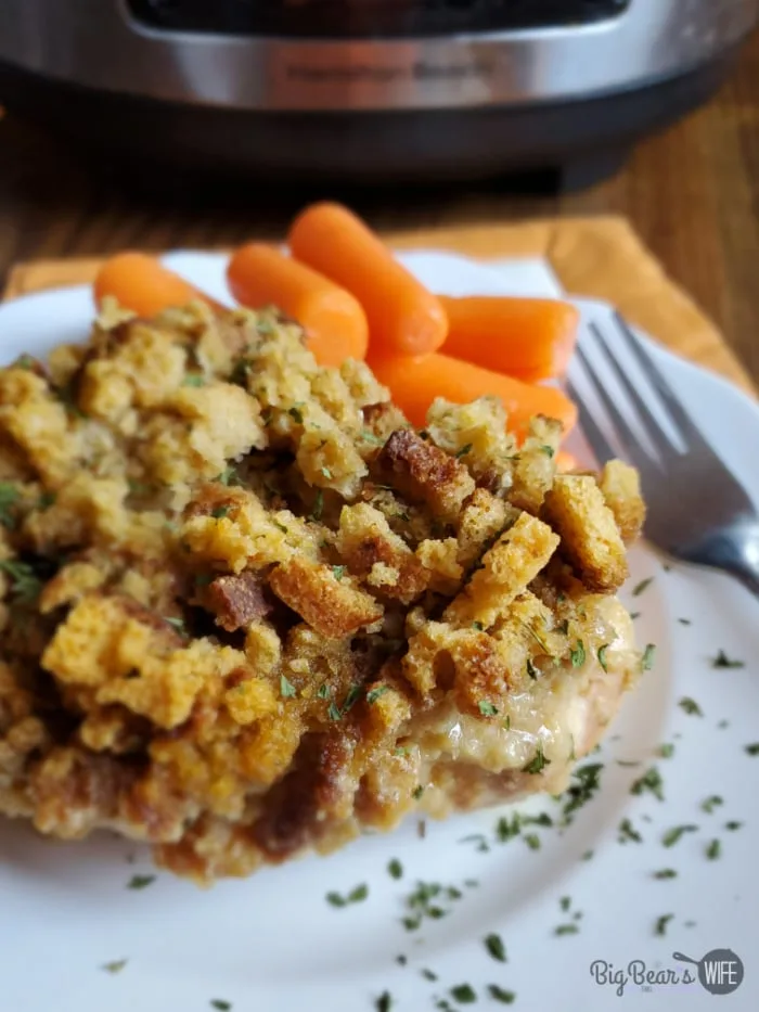 This crockpot chicken and stuffing comes together in just minutes! Simply add a few simple ingredients to your slow cooker, and let it do the work for a delicious, no-fuss dinner.