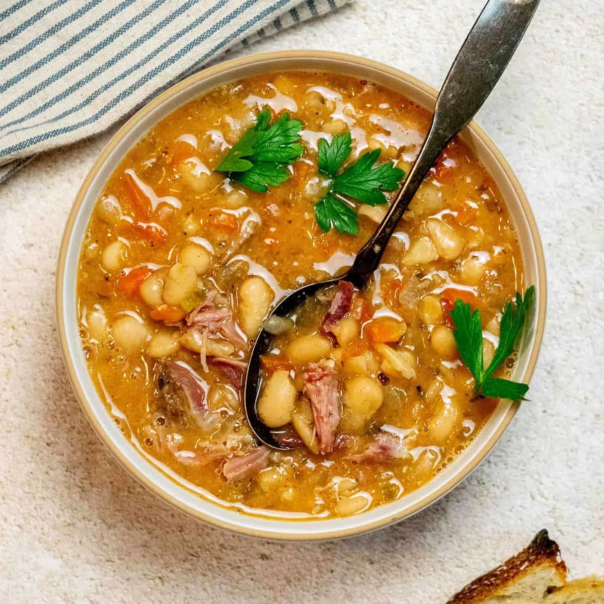 This hearty crockpot ham bone and bean soup is the perfect way to make the most of your leftover holiday ham. It’s comforting, flavorful, and cooks effortlessly right in the slow cooker!