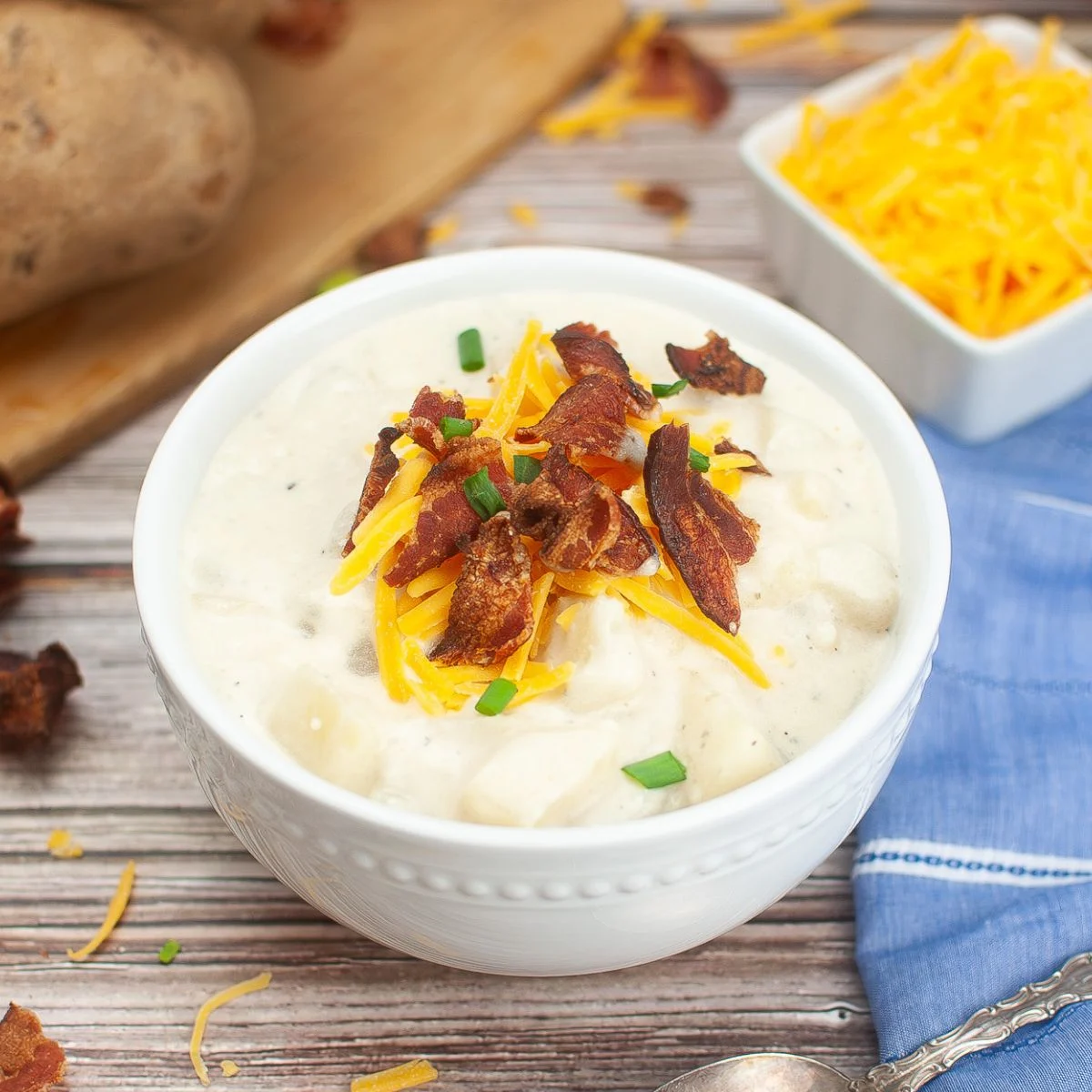 Enjoy a warm and comforting bowl of easy loaded potato soup made right in the crockpot. It's a cozy, flavorful meal the whole family will love.