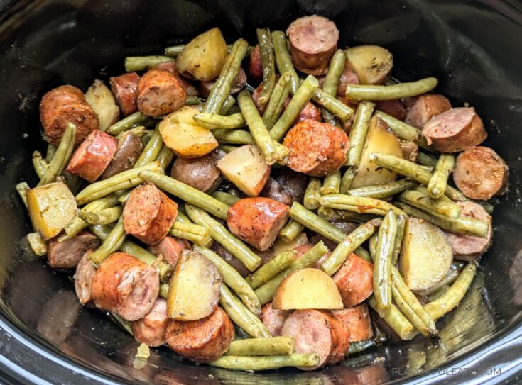 Slow Cooker Cajun Sausage with Green Beans, and Potatoes