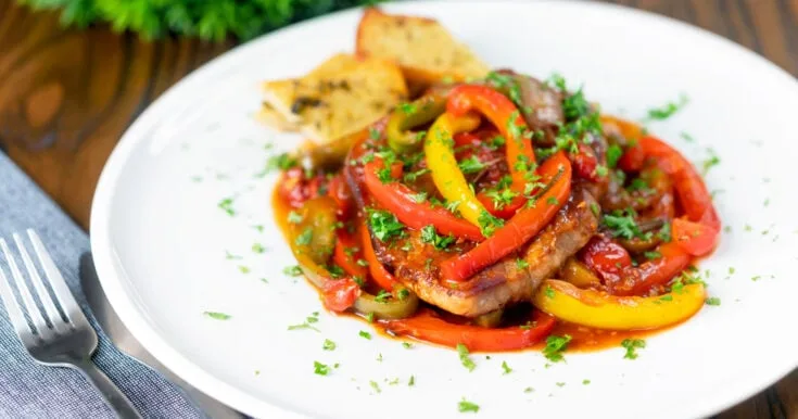 These tender, juicy boneless pork chops are slow-cooked with peppers, tomatoes, and a splash of Worcestershire sauce for a simple yet flavorful meal that’s sure to satisfy!