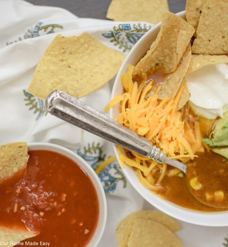 If you’re looking for an easy, quick, and filling crockpot meal, this delicious tortilla soup is a must-try!