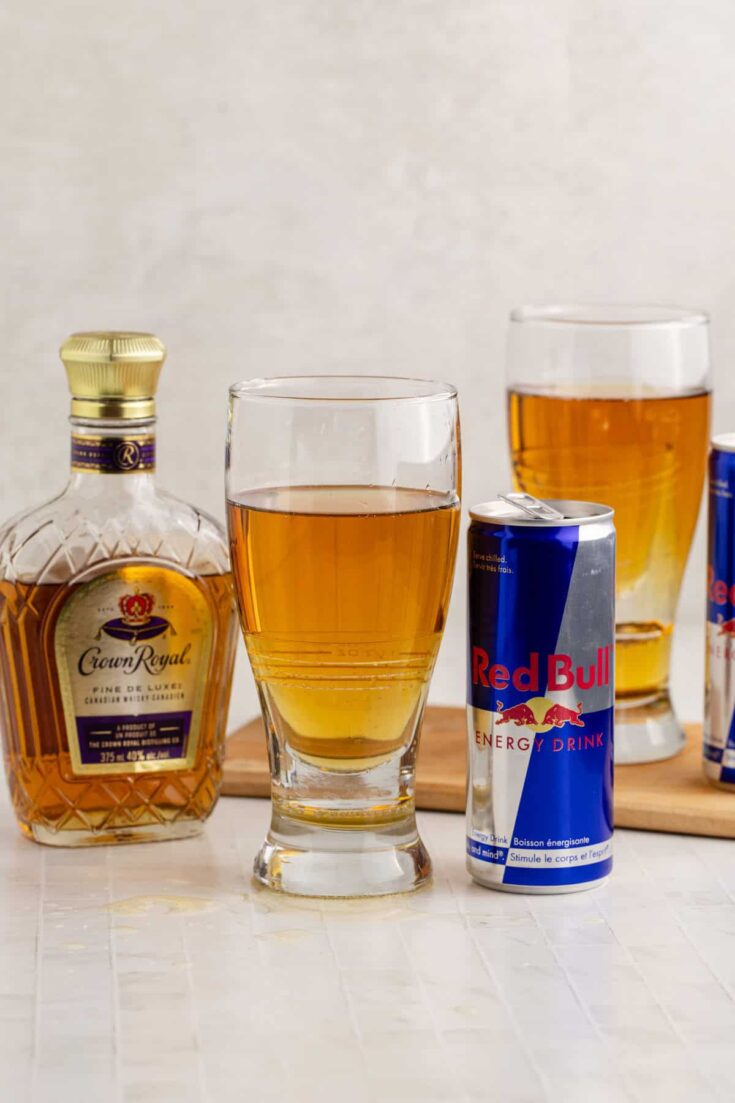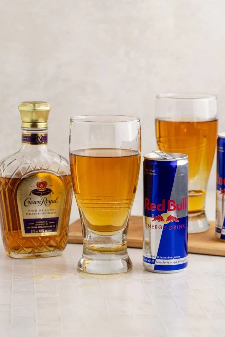 The Vegas bomb shot is a crowd-pleasing party favorite that blends the smooth kick of Crown Royal whiskey with sweet peach schnapps and a burst of Red Bull energy.