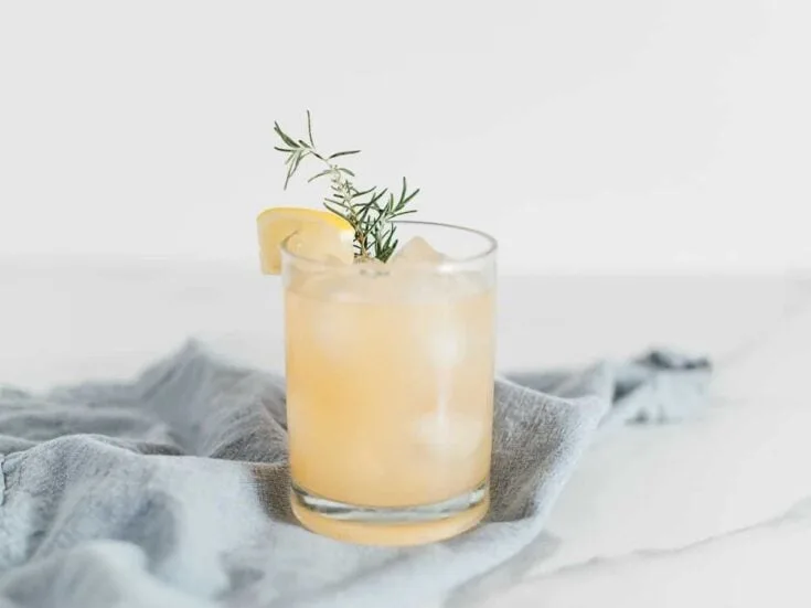 This chamomile whiskey cocktail combines chilled chamomile tea, honey, lemon, rye whiskey, and honey bourbon for a smooth and refreshing sip.