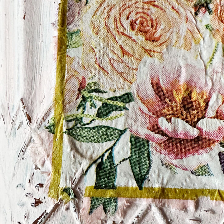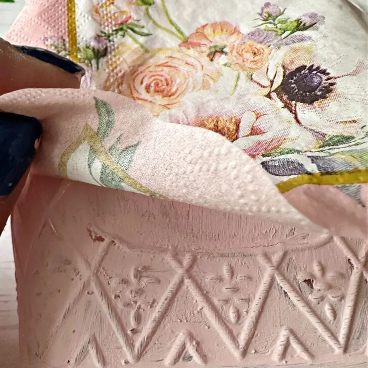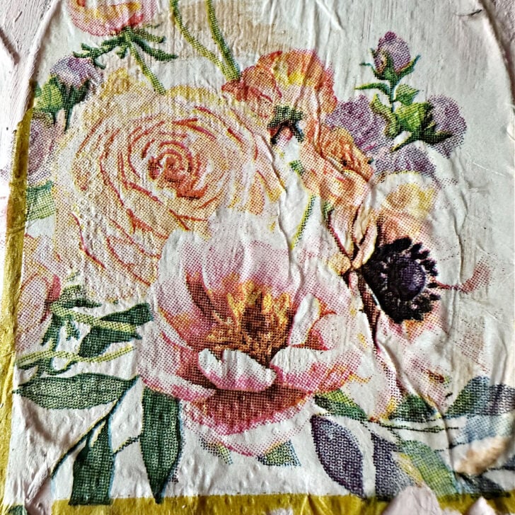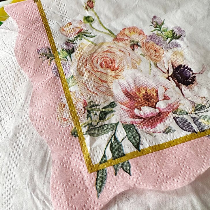- Remove the top printed layer of your napkin and dispose of the second layer. Trim the napkin to fit the area you want to cover.