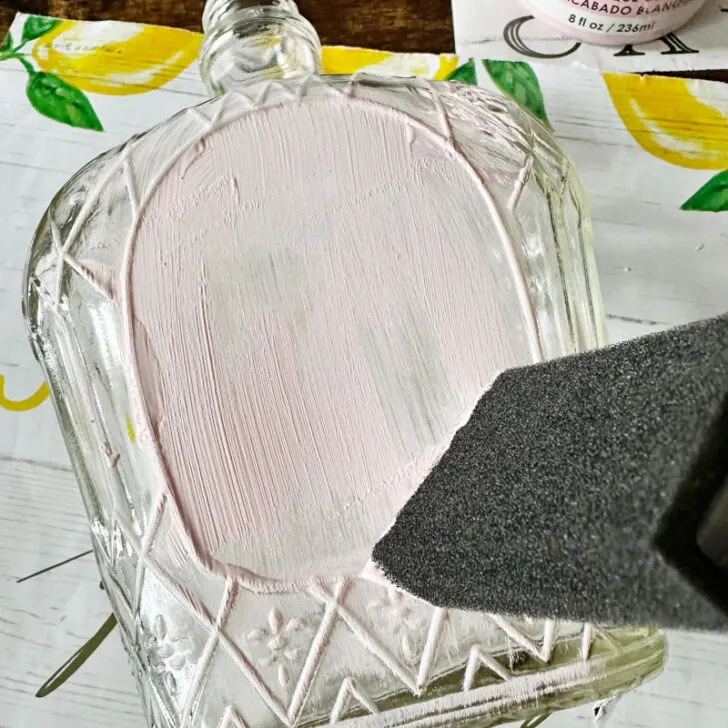 - Paint light, even strokes onto the empty bottle with your paint brush. You will need 2-3 coats for proper coverage.