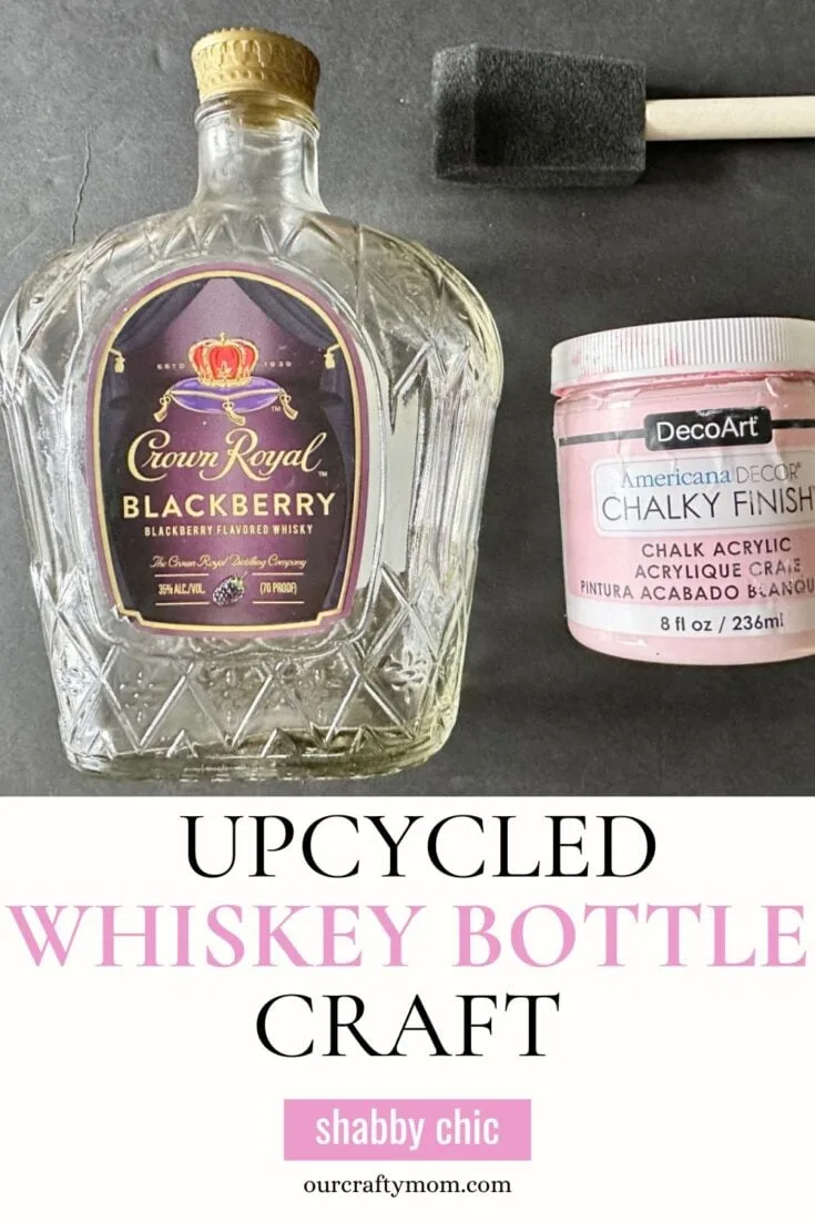 Learn how to give a Crown Royal whiskey bottle a shabby chic makeover using napkins, paint, and mod podge in this stylish upcycling tutorial.