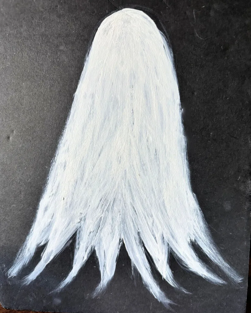 I wanted the ghost to be a bit translucent, not solid, so I only painted one coat. Be sure to let the paint fully dry before proceeding to the next step.