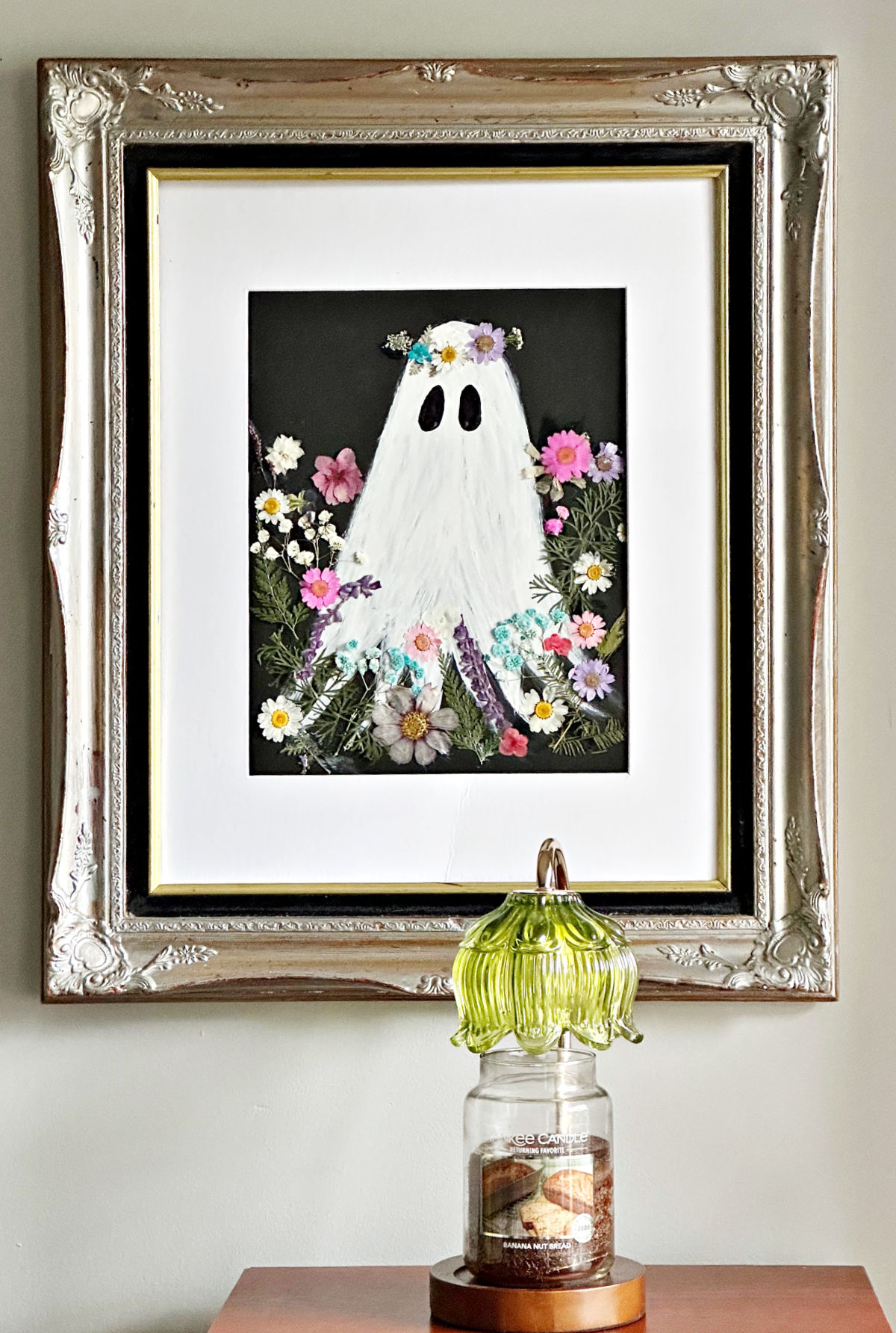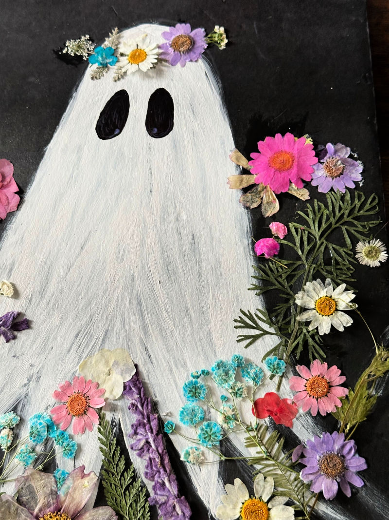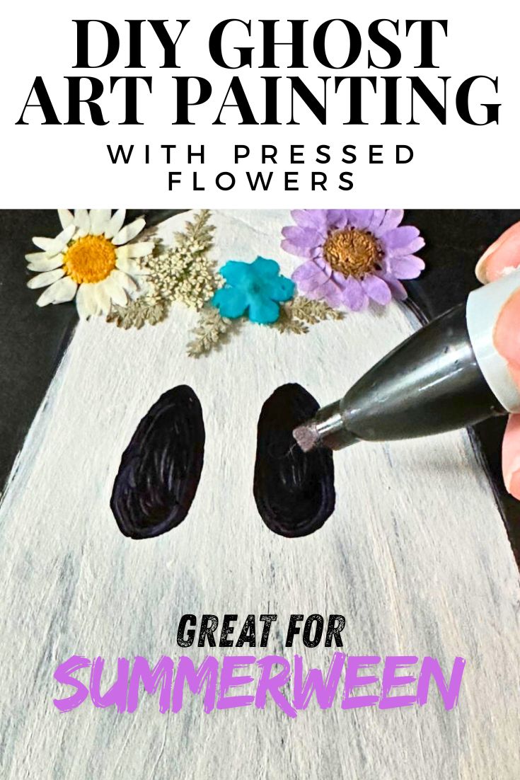 Create a cute ghost painting with pressed flowers using a Dollar Tree foam board! Perfect for Summerween or Halloween and so easy to make!