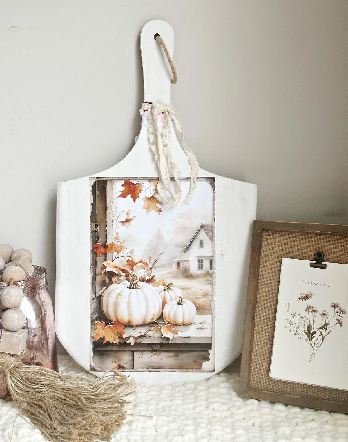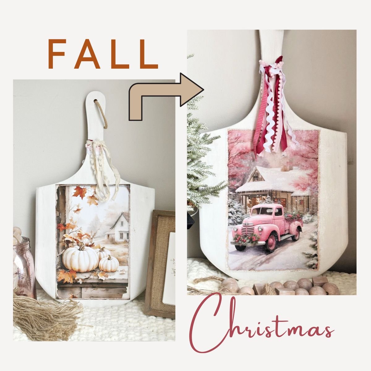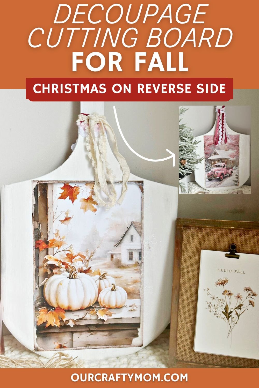 Learn how to make a beautiful double-sided decoupage cutting board—one side fall, one Christmas. Perfect for seasonal decor or gifting!