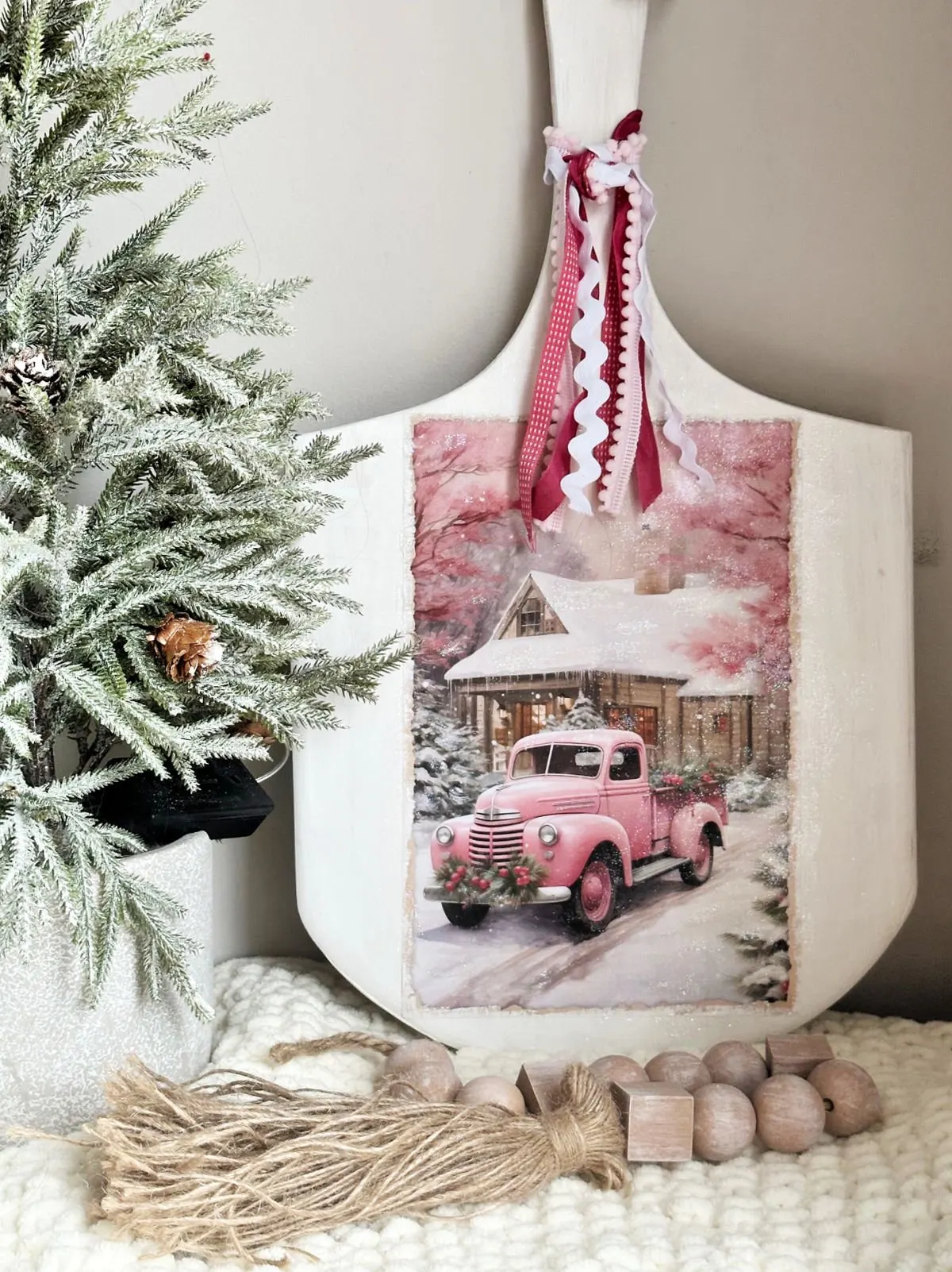 This Christmas board is my favorite because of the pink truck. I love the soft non-traditional Christmas colors in this image.