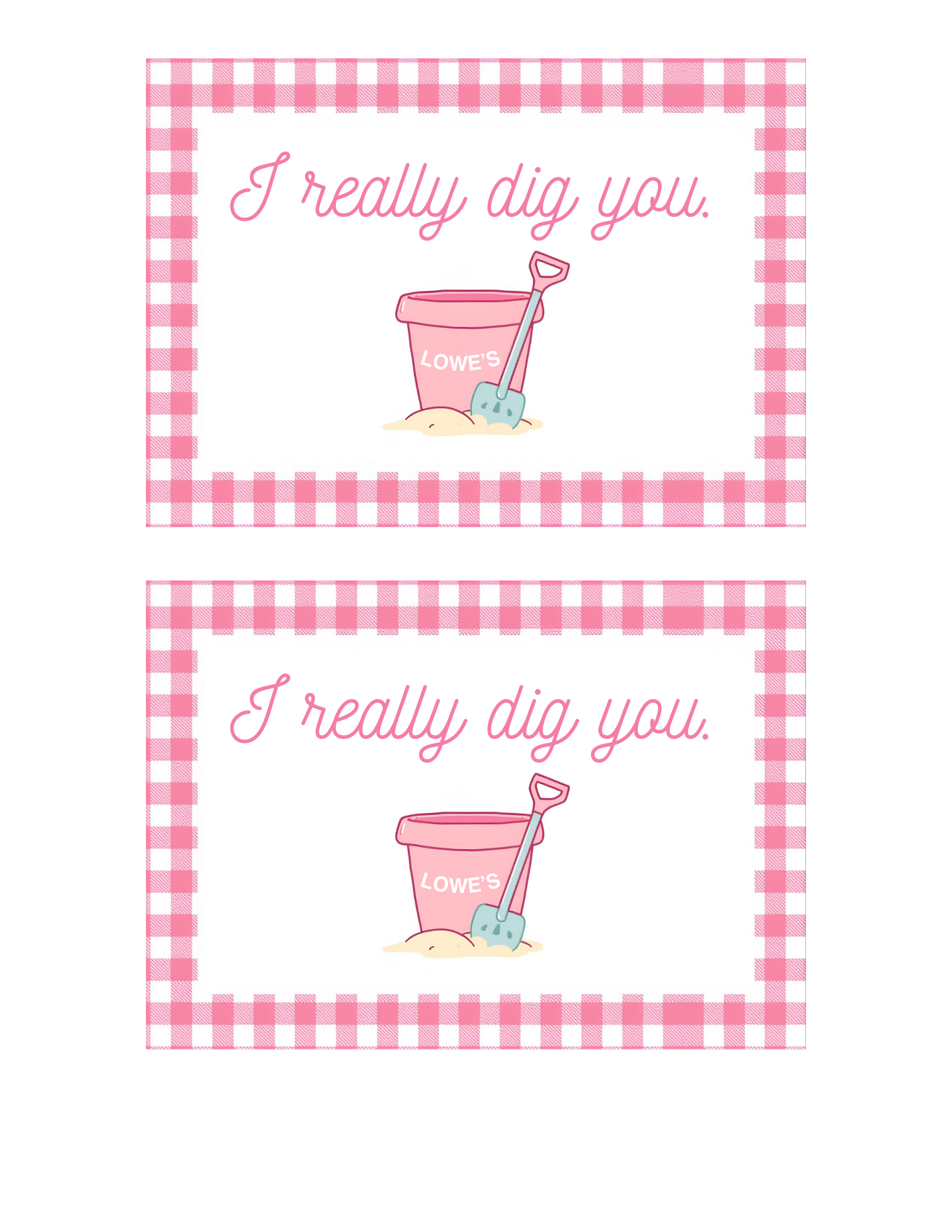 - Download the free "I really dig you" printable and use a hole punch for ribbon.