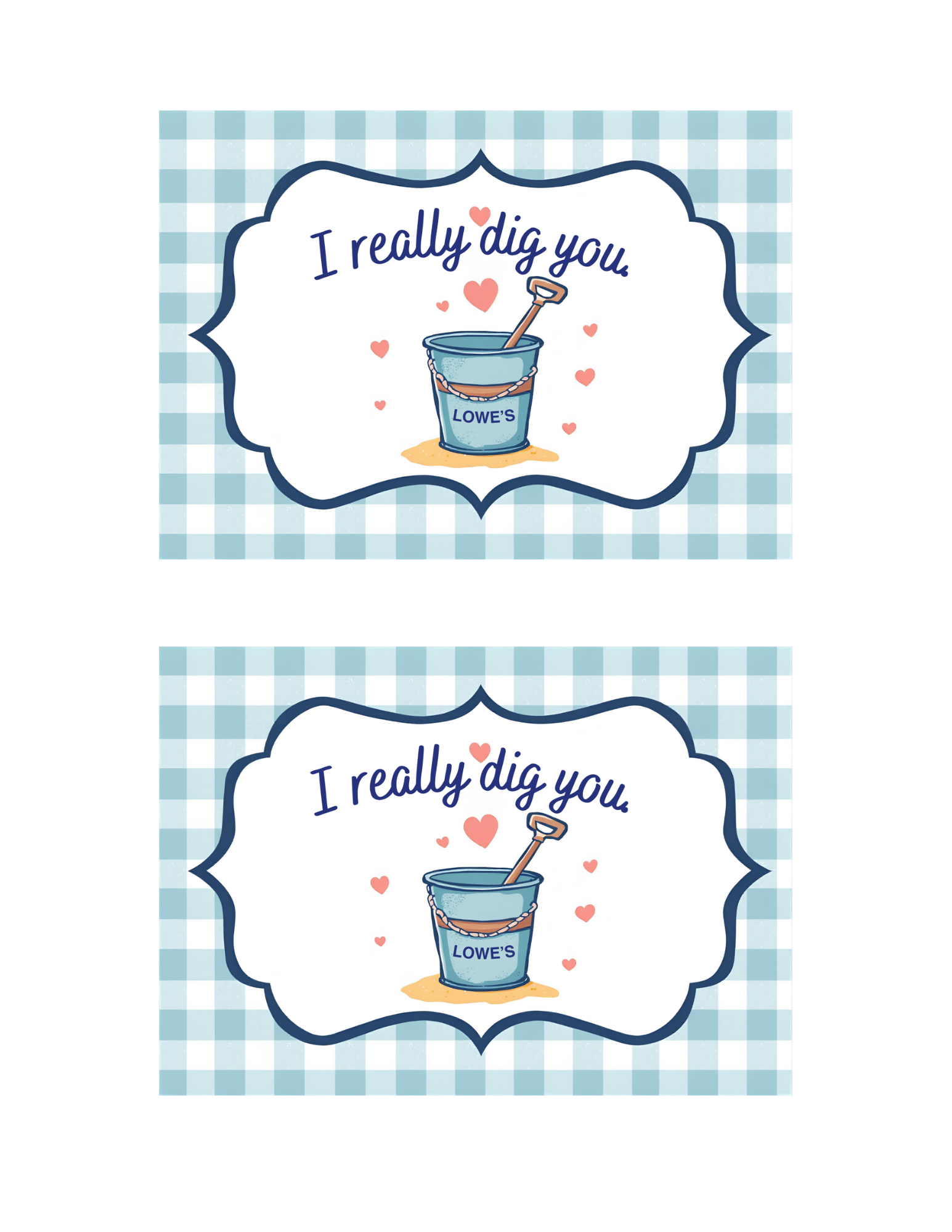 I created two different versions of the printables for you. I’m so happy with how they turned out! Notice Lowe’s written on the bucket?
