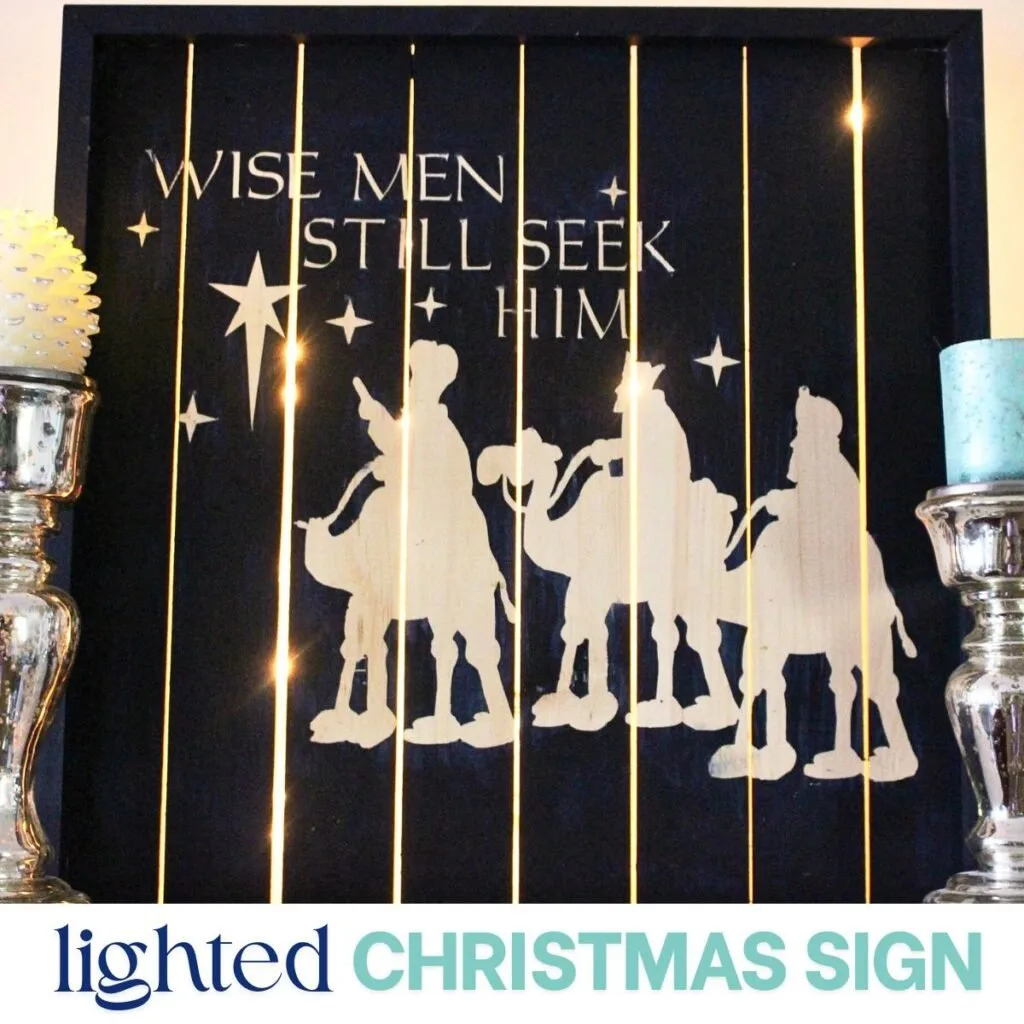 Learn how to make a gorgeous handmade lighted wood Christmas sign with a few simple supplies.