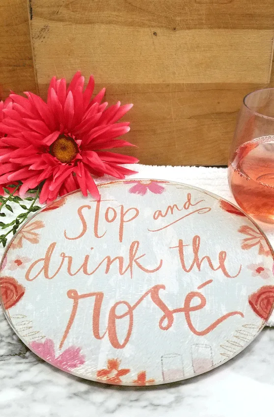 Learn how to transform a Dollar Tree cutting board into a custom glass-style board by simply adding a design to the back using vinyl and a Cricut or Silhouette. It's super easy and fun to make!