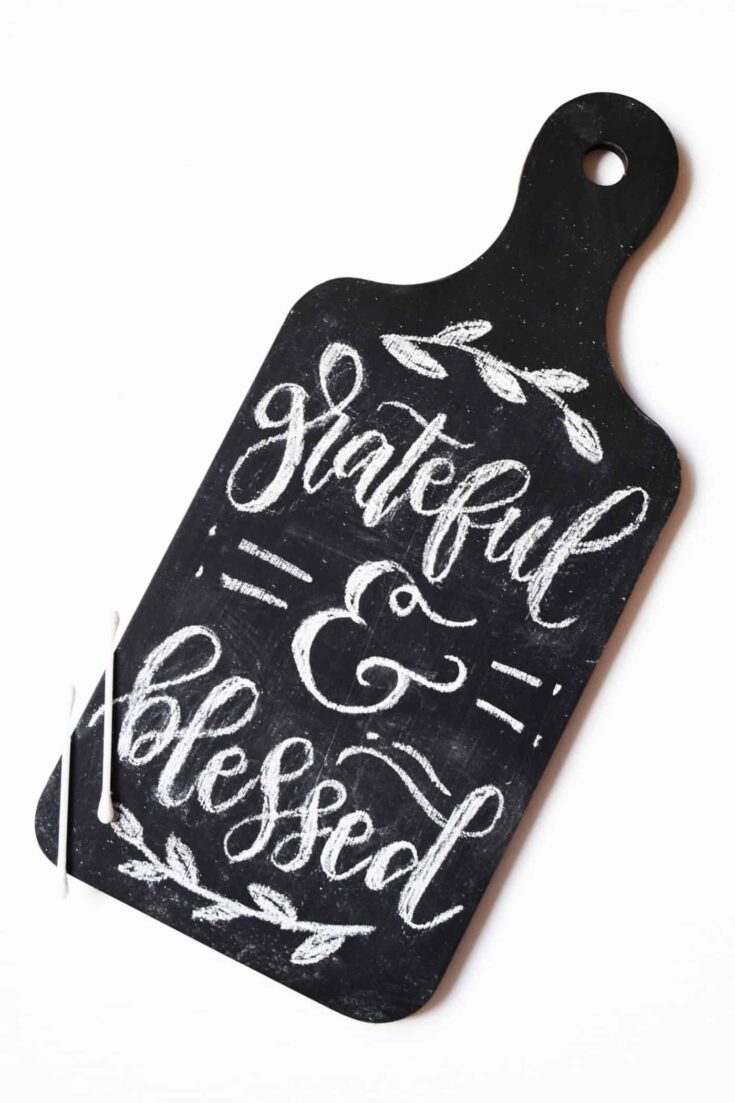 If you don’t have any luck finding cutting boards at your local thrift store, you can always find smaller ones at Dollar Tree. Use this collection as inspiration to makeover your own cutting board.