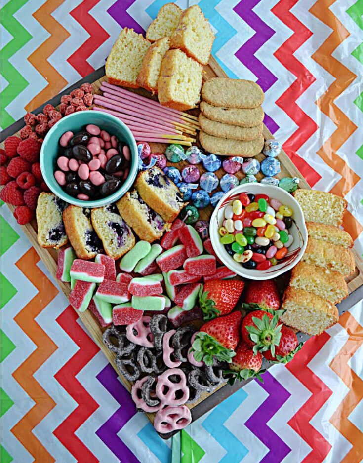 Allow your loved ones to select their favorite Easter treats from this vibrant assortment of candies, cookies, fruits, and delightful quick breads featured on this Easter Dessert Charcuterie Board. Enjoy!
