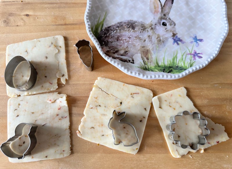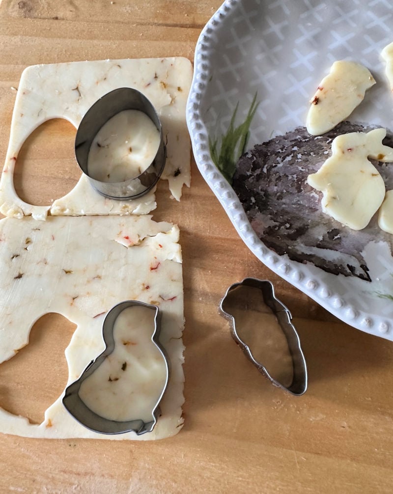 - Add seasonal items, such as bunny and baby chick cheese cut-outs to make it all look super fun!