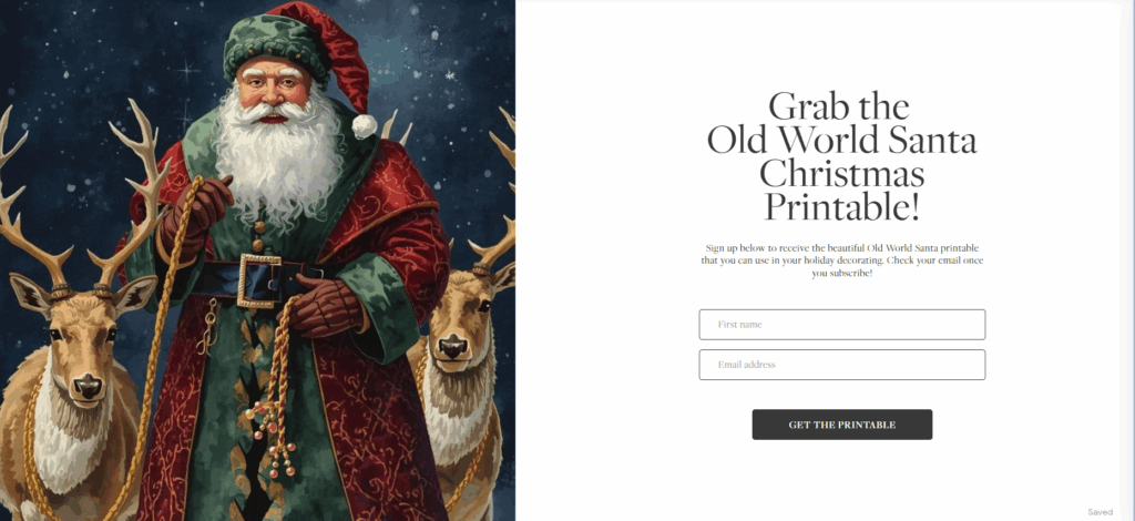 Here is my current offering to new email subscribers which includes a gorgeous Old World Santa Printable.