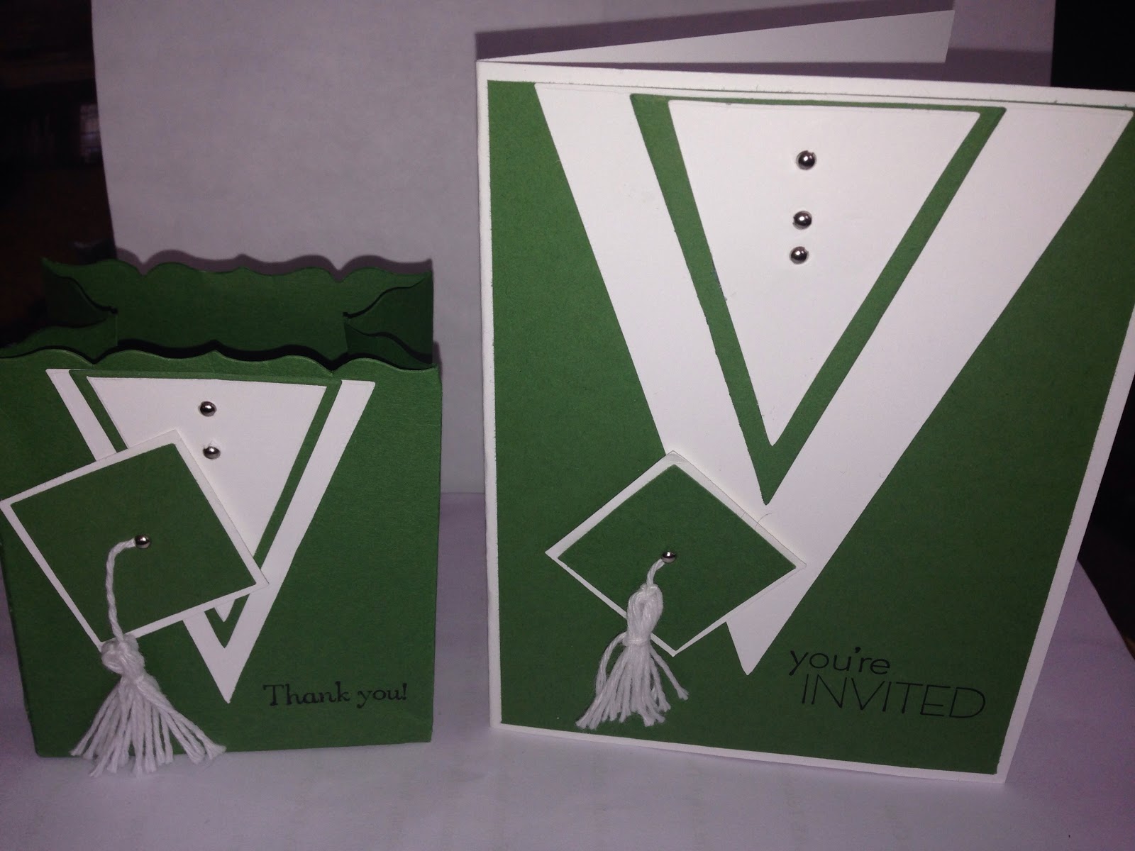 I was determined to get a jump on my daughter’s Graduation invitations and favors. I followed a great tutorial by https://dostamping.typepad.com for the card and tassel.