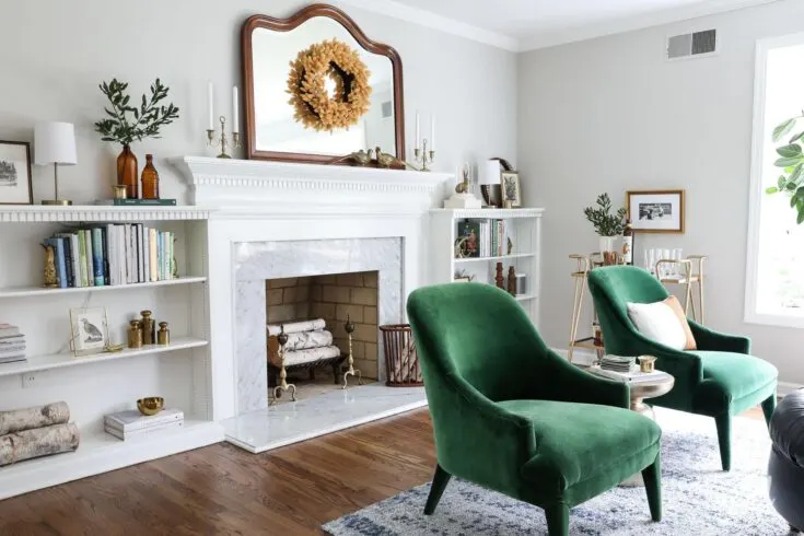 Cozy living room inspiration with non-traditional fall hues that give autumn vibes in a subtle, stylish way.