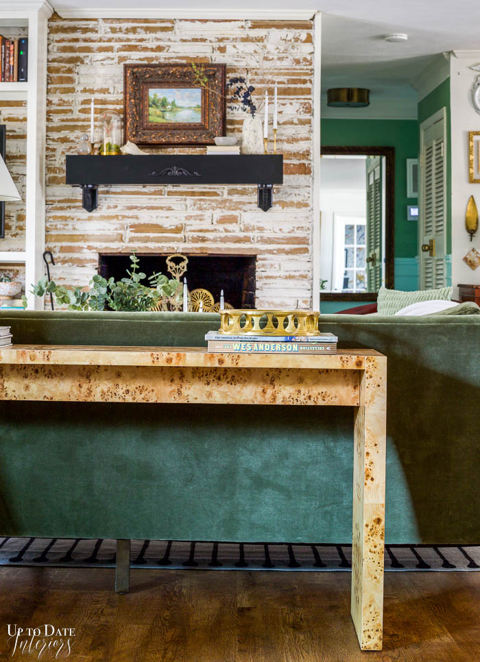If you are looking for small living room decorating ideas, you may find my mid-century modern living room helpful. It is a small, but cozy space that includes several DIY wall decor ideas, as well as affordable furniture finds. Removing the oversized grey sofa and replacing it with this velvet piece made such a difference!