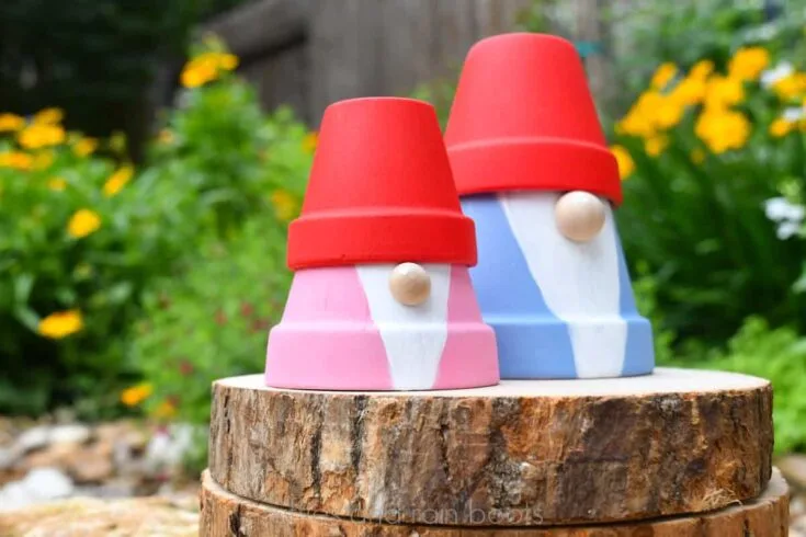 You can create these adorable flower pot gnomes using just paint, a bead, and clay pots from the dollar store. They’re easy to customize in any size—so if you’ve got terra cotta pots at home, they’ll work perfectly!