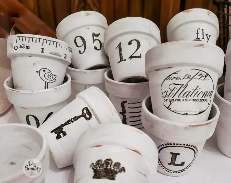I'm excited to share a quick and easy project: creating French-inspired seedling pots using dollar store flower pots, white paint, and stamps. The creative possibilities are endless!