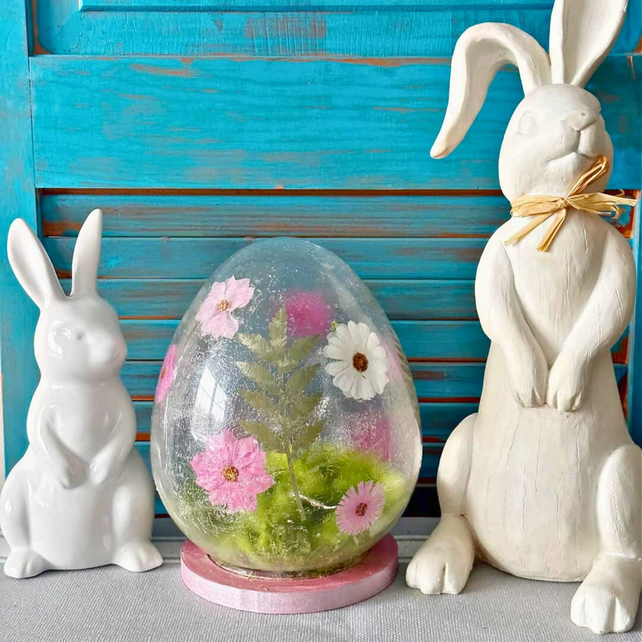 Discover the process of creating an elegant glass cloche with a wooden base featuring pressed flowers, using a glass egg from the Target Dollar Spot.