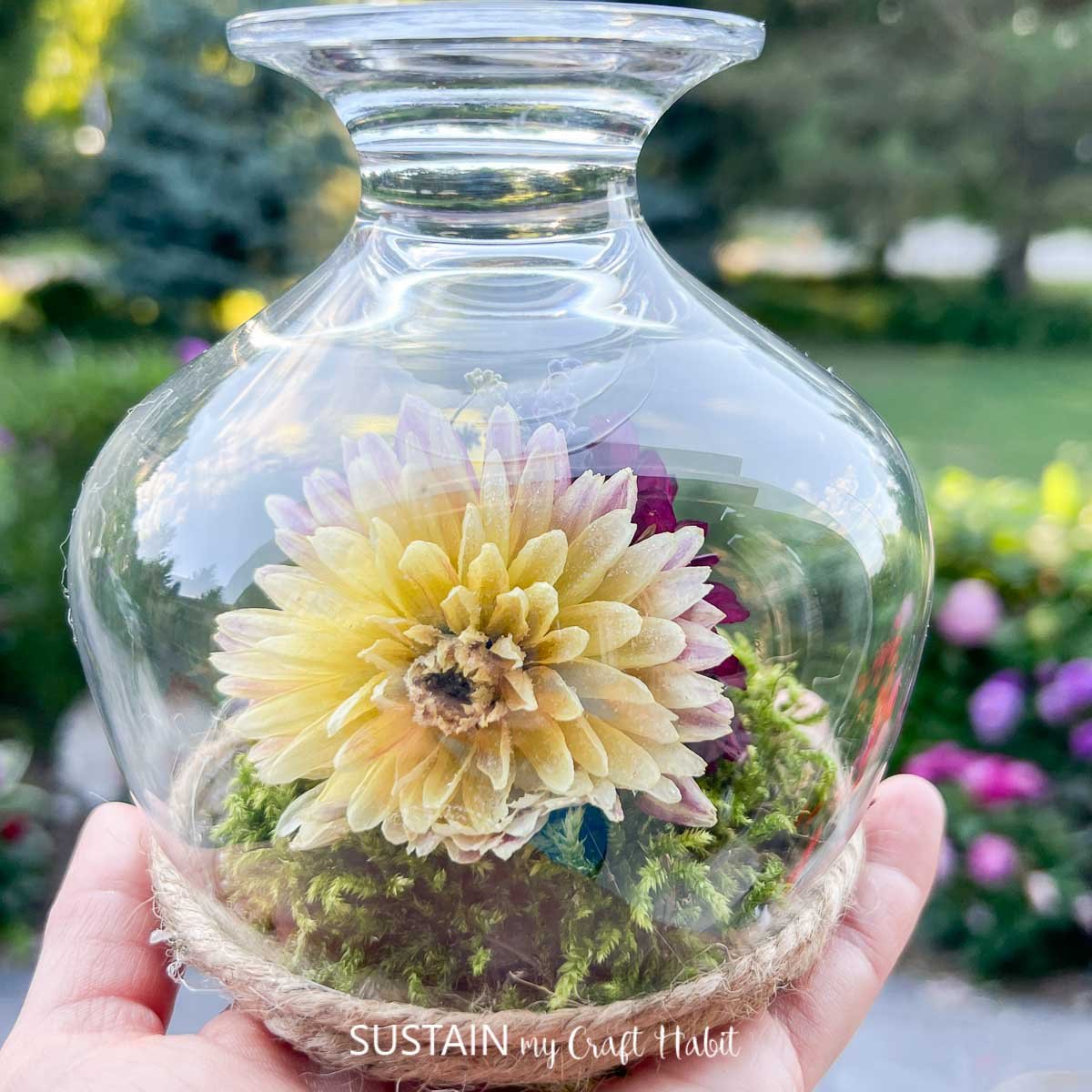 Craft a stunning dried flower terrarium using a repurposed wine glass and a handful of simple steps.