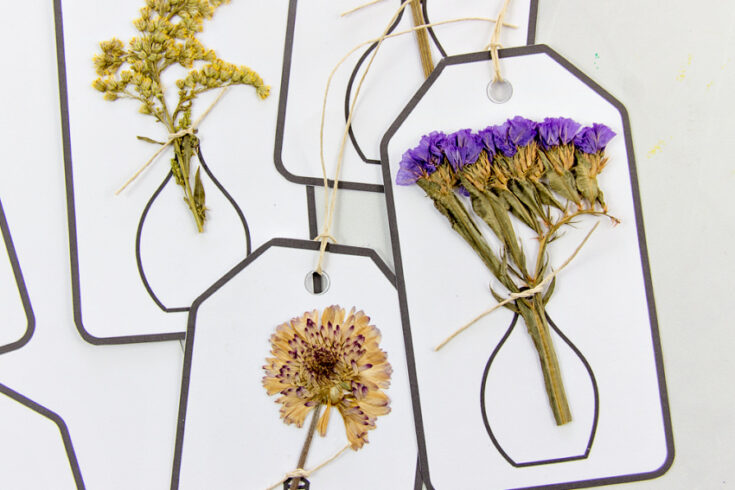 Check out this step-by-step guide for the process of creating a craft for a gift tag using pressed flowers.