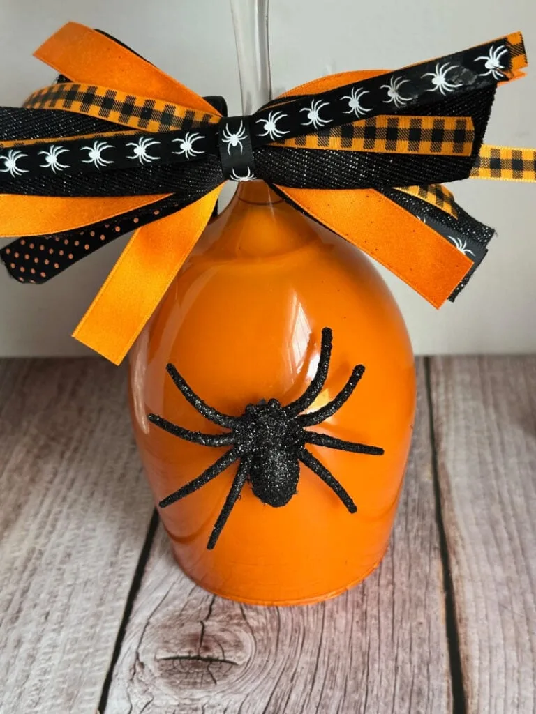If you are looking for a fun idea for a girls night craft, these pumpkin wine glasses are perfect!